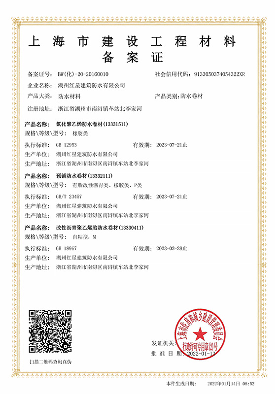 上海卷材備案證